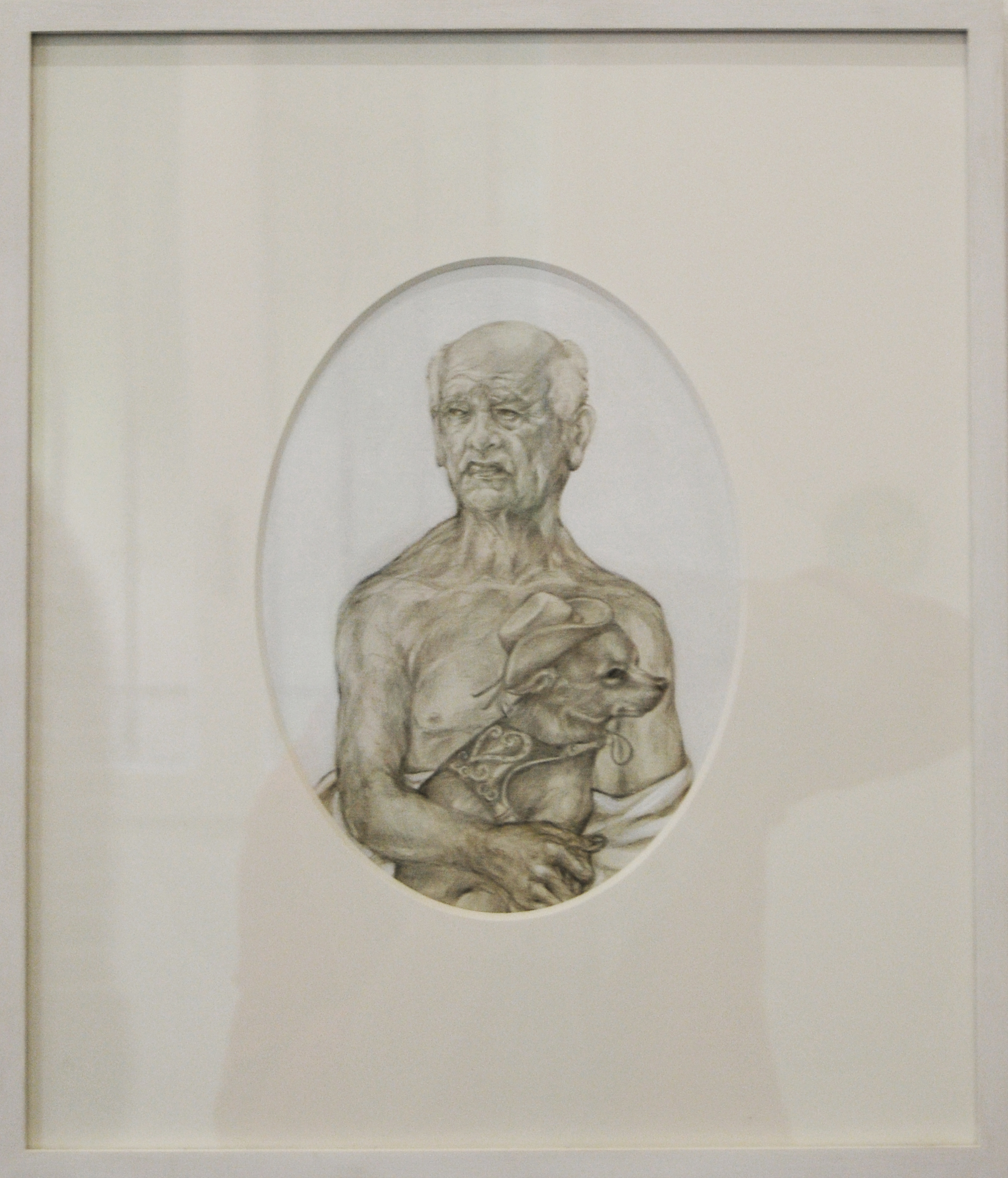 Cornelia Badelita, Old man with a dog, 2014, cm 35,5 x 41,5, punta d'argento su tela